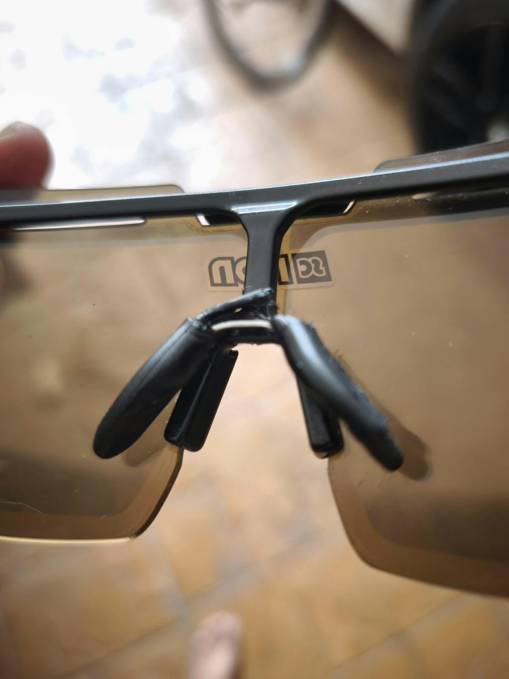 Der optische Einsatz befindet sich im Inneren der Brille, hinter der Sonnenlinse, und ist kleiner als die Hauptlinse. Dadurch enthält der periphere Bereich der Sonnenlinse keine optische Korrektur, was den Eindruck eines leicht reduzierten seitlichen Sichtfeldes im Vergleich zu direkt verglasten Sportbrillen vermitteln kann. Dies ist eine typische Eigenschaft aller optischen Einsätze: Die Korrektionslinse ist direkt vor der Blickachse positioniert, um eine klare Sicht im primären Sehbereich zu gewährleisten, während der seitliche Bereich außerhalb der korrigierten Zone bleibt. Dieser Effekt beeinträchtigt die Leistung nicht, ist jedoch wichtig bei der Entscheidung zwischen einem optischen Einsatz und Korrektionsgläsern, die auf Adapter montiert sind und das gesamte Sichtfeld abdecken. Scicon Sports bietet Korrekturlösungen sowohl mit optischem Einsatz als auch mit vollflächigen Adapterlösungen mit Korrektionsgläsern.